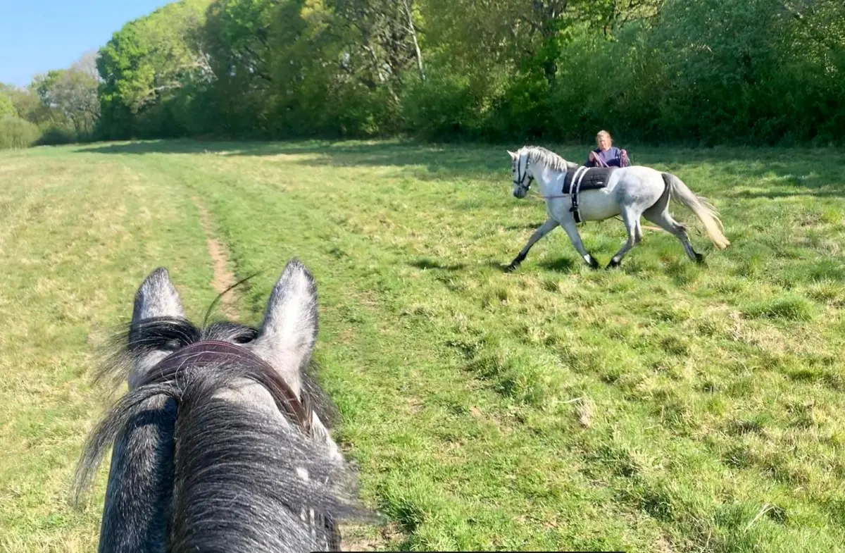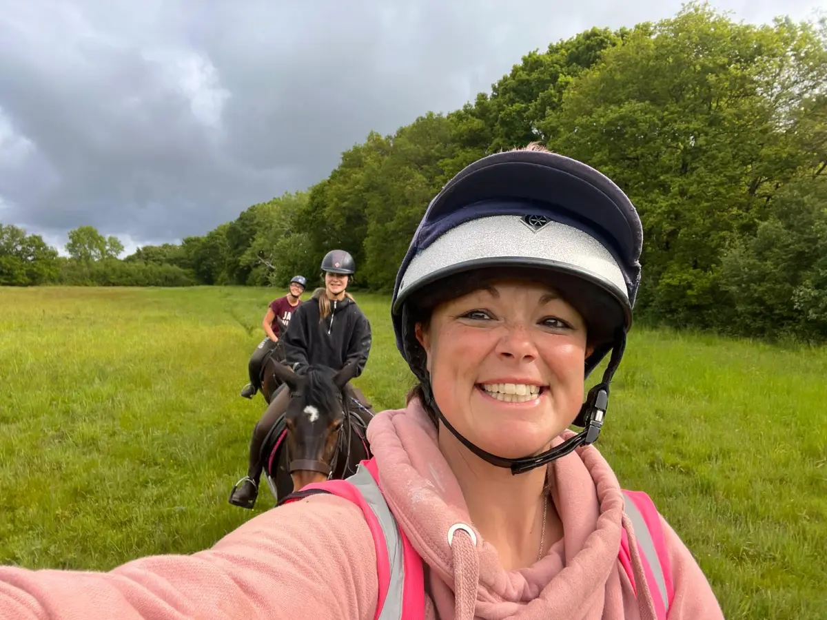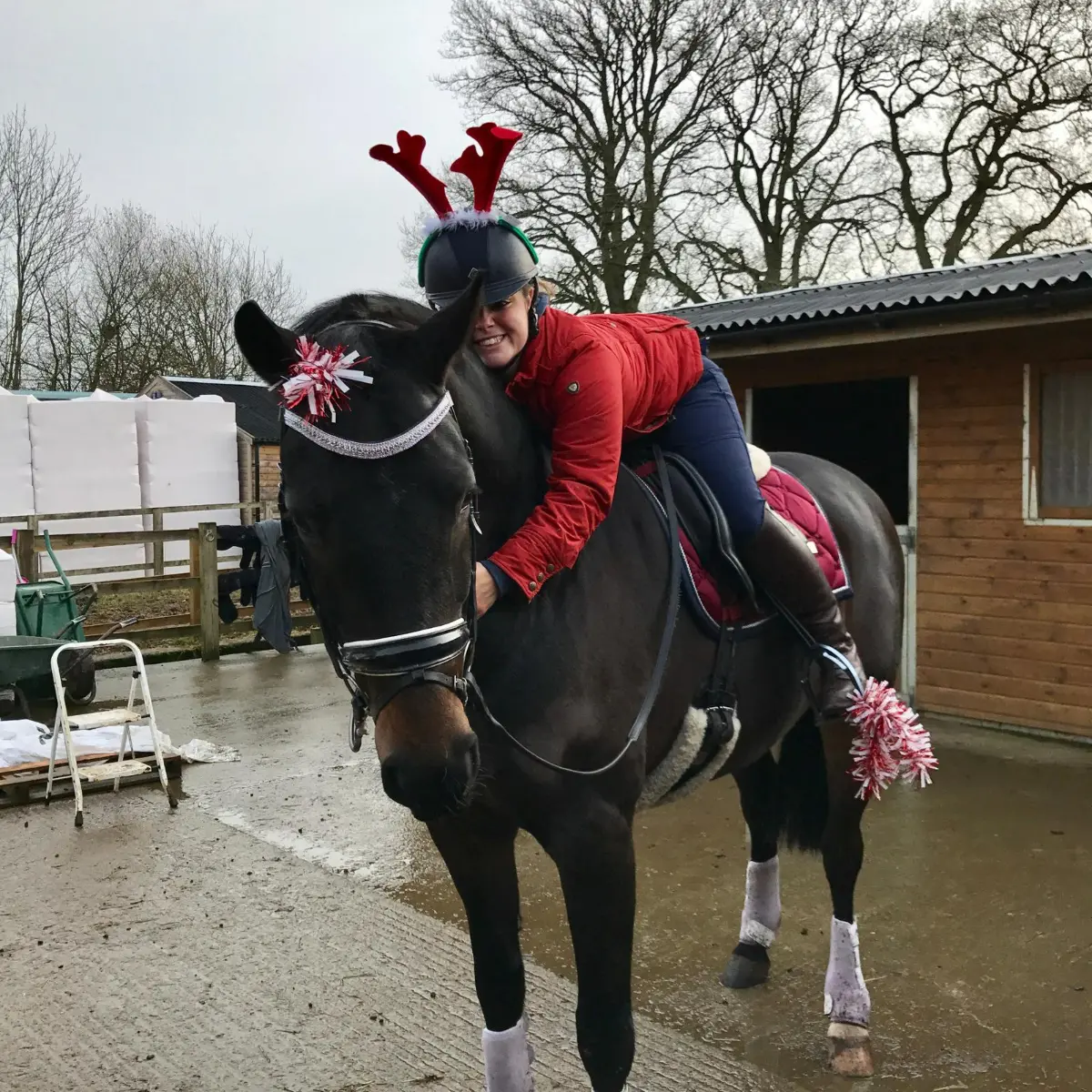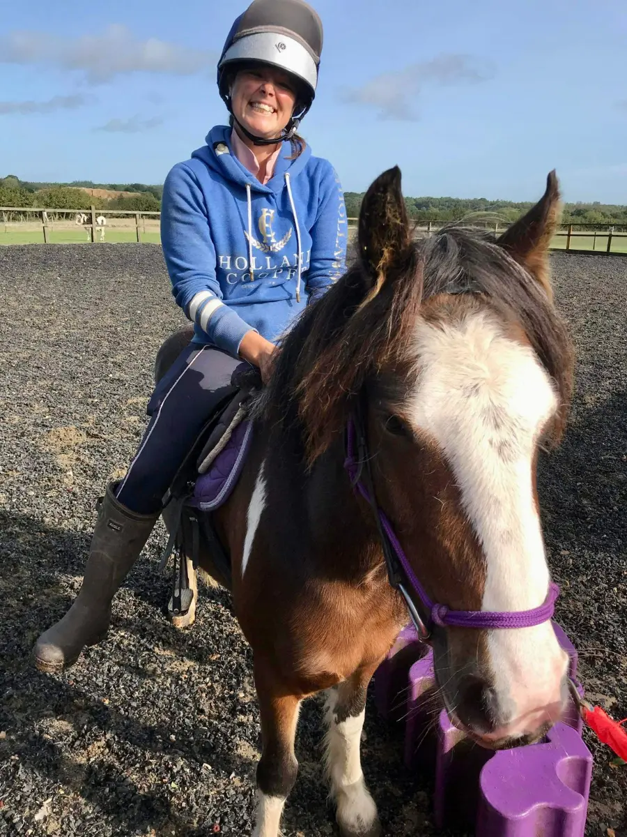 Shortly after getting him, a number of significant personal issues led to me suffering from anxiety and a lack of confidence. Although it was no fault of my horse and despite having over 30 years’ experience owning and riding horses, I became a middle aged, unfit and nervous rider. It got so bad at one point that the thought of even bringing my horse in from the field made me feel physically sick, let alone the idea of sitting on him. Through Kirstie’s knowledge, seemingly infinite amounts of patience, encouragement and warmth, I am now happily schooling, hacking and jumping my horse – things that only six months ago would have seen unimaginable to me. My riding ability and confidence has come on leaps and bounds and the joy of riding has returned to me.